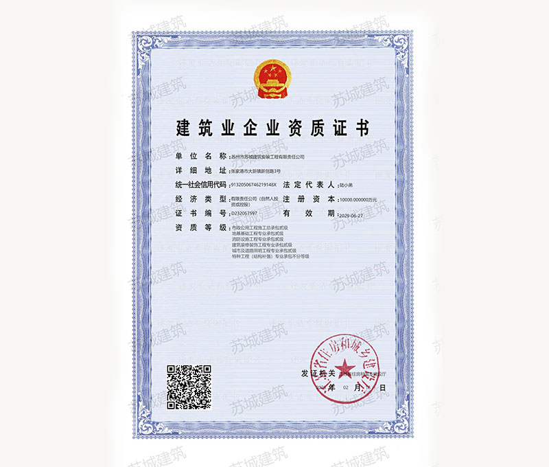 蘇州市蘇城建筑安裝工程有限責(zé)任公司,擁有主項(xiàng)建筑工程施工總承包一級資質(zhì),增項(xiàng)市政公用工程施工總承包二級資質(zhì)和建筑裝修